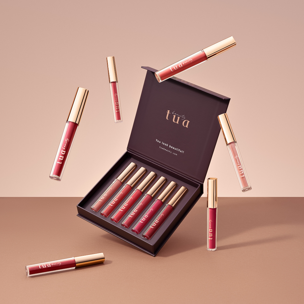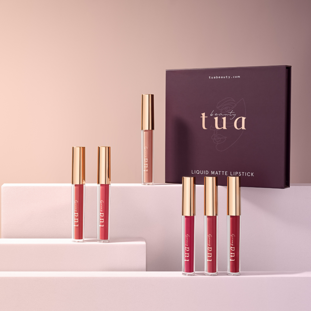 Noul set TUA Beauty invaluie buzele in nuante indraznete cu efect mat si catifelat. Seturile de rujuri sunt rezistente si asigura buzelor 8 ore de confort optim.